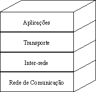 A arquitetura internet se baseia em um modelo com quatro camadas (figura 1), onde cada uma executa um conjunto bem definido de funções de comunicação. No modelo em camadas da internet, não existe uma estruturação formal para cada camada, conforme ocorre no modelo OSI. Ela procura definir um protocolo próprio para cada camada, assim como a interface de comunicação entre duas camadas adjacentes.