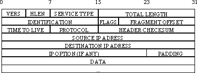 O campo VERS identifica a versão do protocolo que montou o quadro. O campo HLEN informa o tamanho do quadro em palavras de 32 bits, pois este pode ser variável. O campo SERVICE TYPE indica às sub-redes o tipo de serviço que deve ser oferecido ao datagrama (por exemplo, para transmissão de voz digitalizada necessita-se mais de uma entrega rápida do que um controle rigoroso de erros, ao passo que para um serviço de transferência de arquivos, o tempo de entrega pode ser sacrificado para se obter um maior controle de erro).
