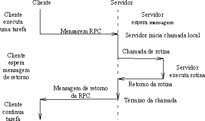 O RPC é um mecanismo criado para suportar aplicações distribuídas baseadas em um modelo cliente-servidor. A aplicação cliente faz uma chamada de procedimento remoto onde o RPC, de forma automática, obtém os valores dos argumentos da chamada, monta a mensagem correspondente, a envia ao servidor e aguarda a resposta, armazenando os valores retornados nos argumentos definidos na chamada. Na realidade, o que ocorre é a mesma coisa que nas chamadas de funções locais comumente encontradas em aplicações, com a diferença que a execução real da função está ocorrendo em um local remoto.