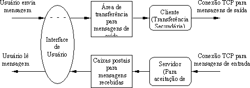 O SMTP é o protocolo utilizado no correio eletrônico da arquitetura TCP/IP. Ela prevê uma interface com o usuário para enviar e receber mensagens que são armazenadas, inicialmente, em uma área de transferência de mensagens do sistema para serem, posteriormente, enviadas em background, conforme a figura 3.8.